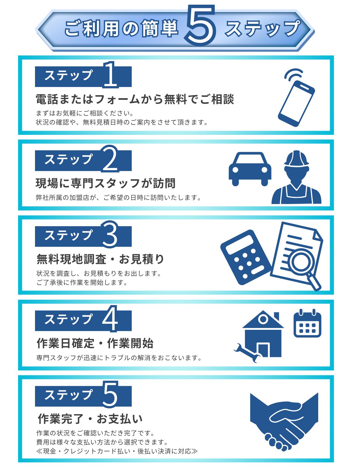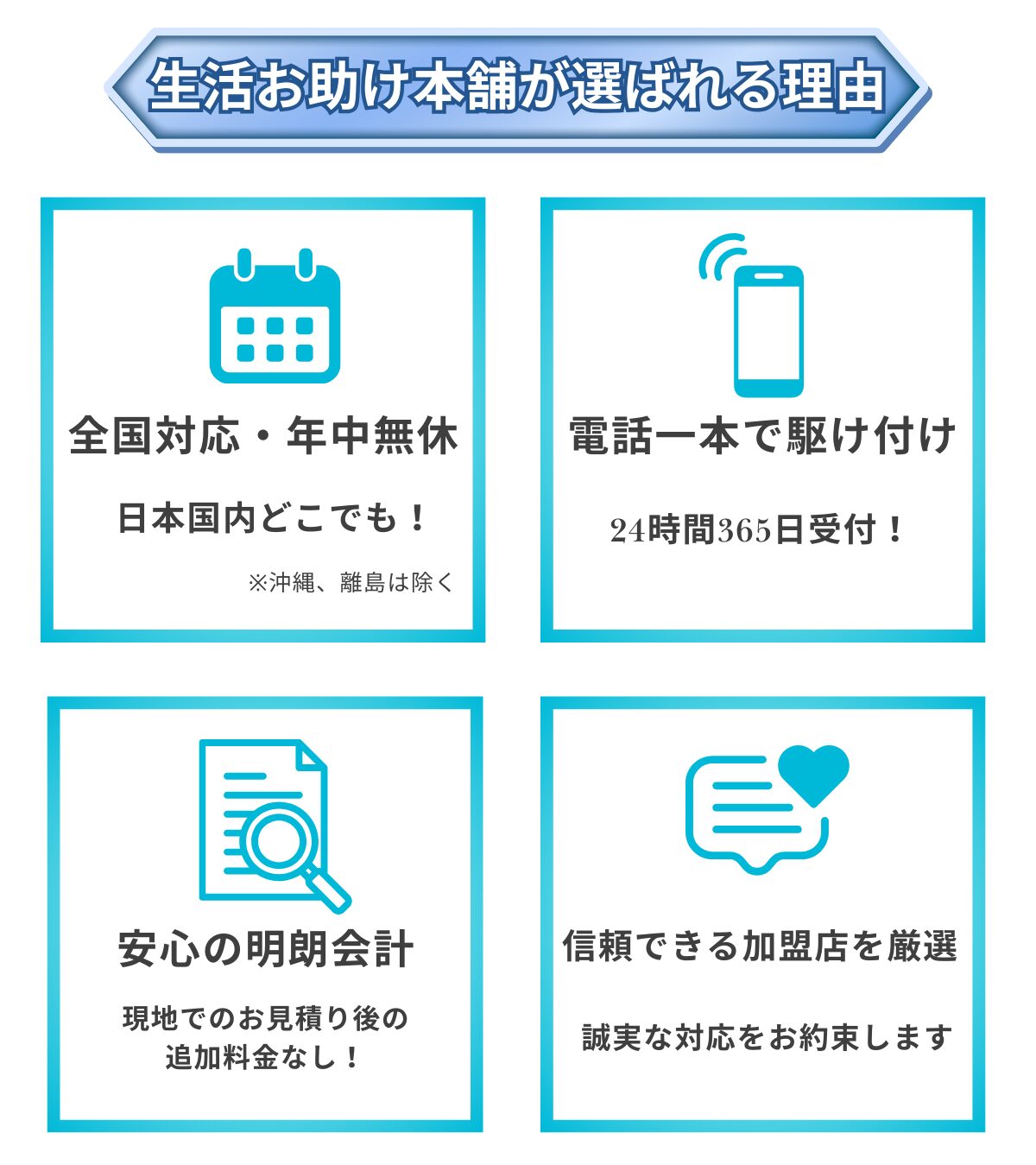 暮らしで起こる生活トラブルを迅速・確実に解決できるよう情報発信とサービスの提供を行います。