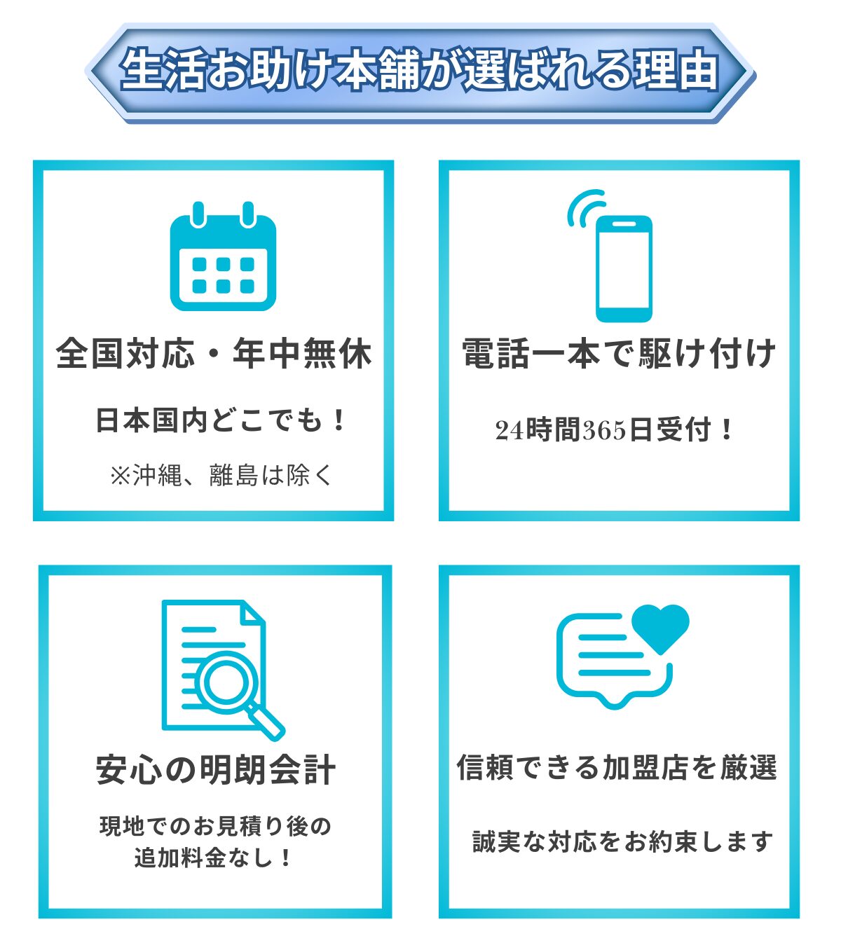暮らしで起こる生活トラブルを迅速・確実に解決できるよう情報発信とサービスの提供を行います。